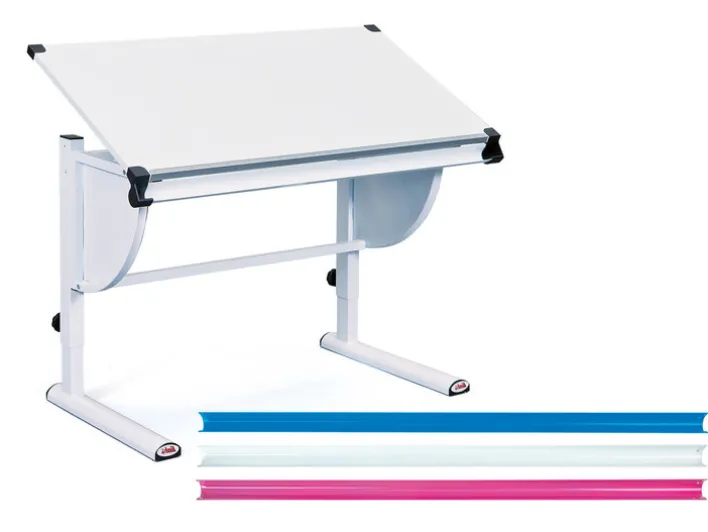 SAM von CASAVANTI verfügt über ein stabiles und standfestes Metallgestell mit C-Fuß. Kinder können hier nicht nur ihre Hausaufgaben erledigen, sondern auch malen, basteln oder lesen. Schwarze Kantenschoner an den Ecken verhindern Macken und schützen beim Toben im Kinderzimmer vor Verletzungen. Dank der Verstellmöglichkeit kann das Kind an seinem Schreibtisch eine ergonomische und bequeme Körperhaltung einnehmen, die das Lernen unterstützt. Zudem passt das moderne Design zu jeder Einrichtung.