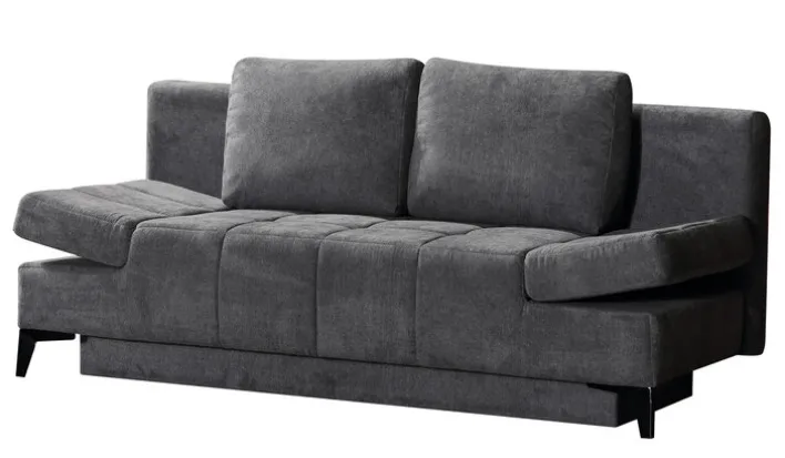 Das elegante CASAVANTI Schlafsofa TABBY hat eine Breite von etwa 208 cm und bietet einen ausgezeichneten Schlafkomfort. Mit seinem modernen Look und Polstern in der Farbe grau lässt der 3-Sitzer zahlreiche Gestaltungsmöglichkeiten zu und ist problemlos in bereits bestehende Raumkonzepte integrierbar. Die Liegefläche mit Taschenfederkern hat eine Größe von 150 x 200 cm. Für Decken und Kissen ist das Schlafsofa zusätzlich mit einem Bettkasten ausgestattet.