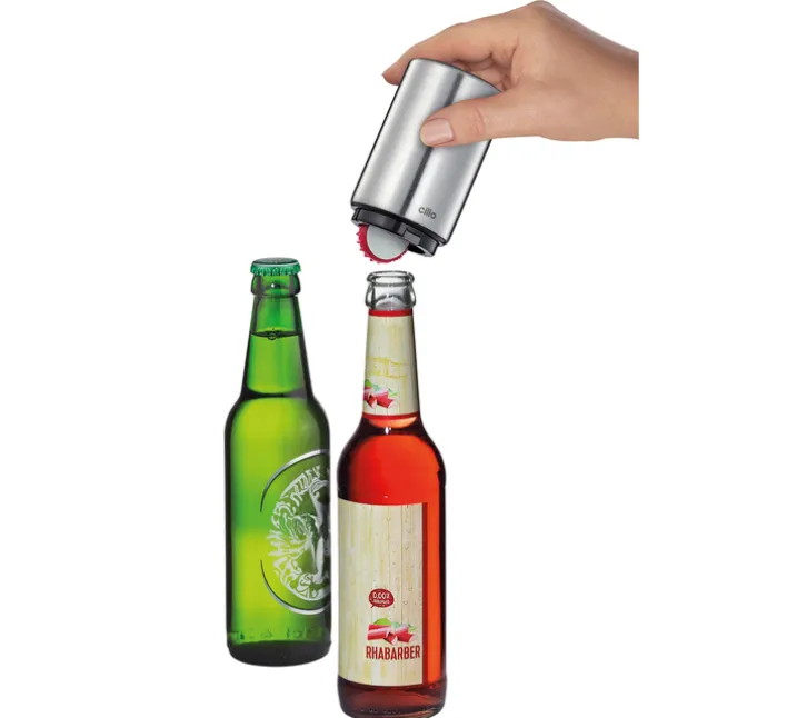 Das aus Edelstahl gefertigte Modell ist nicht nur handlich und vielseitig verwendbar: Es kommt mit einem natürlichen Korrosionsschutz daher, hält mechanischen Einflüssen solide stand und erweist sich als langlebiges Küchen- und Barzubehör. Wer einen qualitativ hochwertigen Flaschenöffner sucht, wird bei cilio fündig.