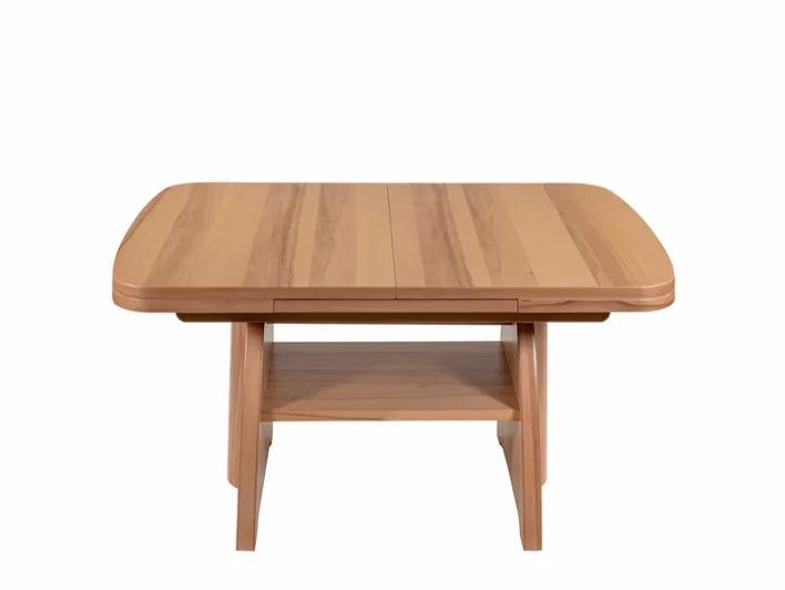 Mit einer Länge von 101 cm, einer Breite von 71 cm und einer Höhe von 56 cm lässt sich der Tisch bei Bedarf auf eine maximale Länge von 140 cm ausziehen. Die Höhe ist manuell verstellbar und kann bis zu 75 cm angepasst werden. Eine praktische Ablagefläche unter der Tischplatte bietet zusätzlichen Stauraum. Der Tisch eignet sich für den Einsatz im Wohnzimmer und ist durch sein ausziehbares und höhenverstellbares Konzept vielseitig einsetzbar.