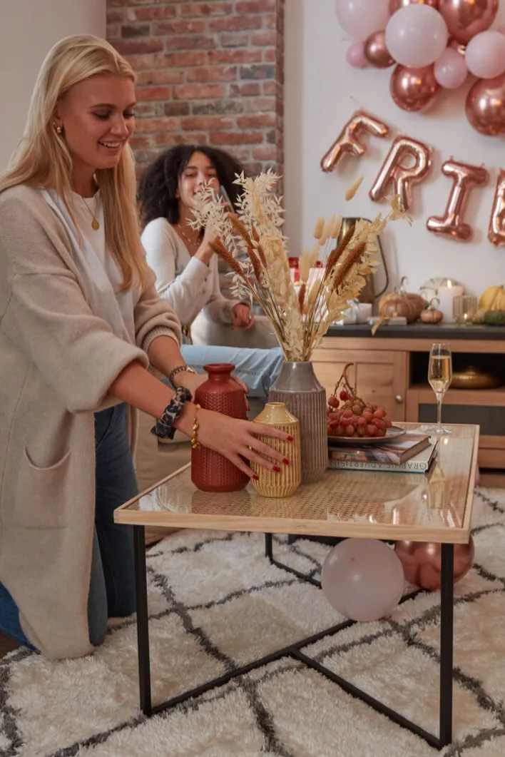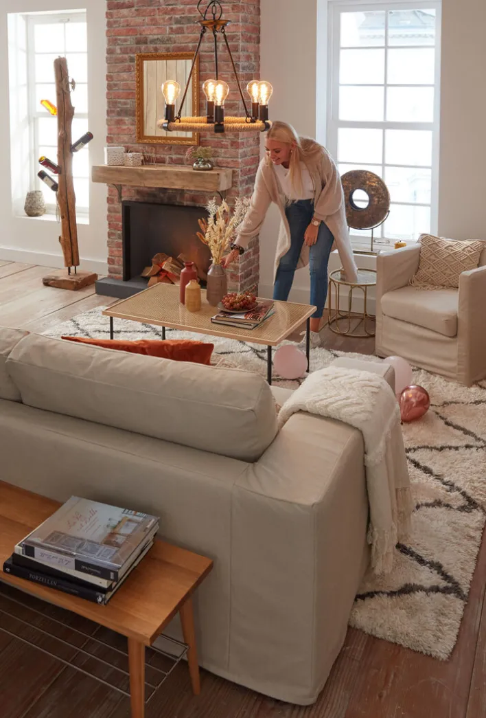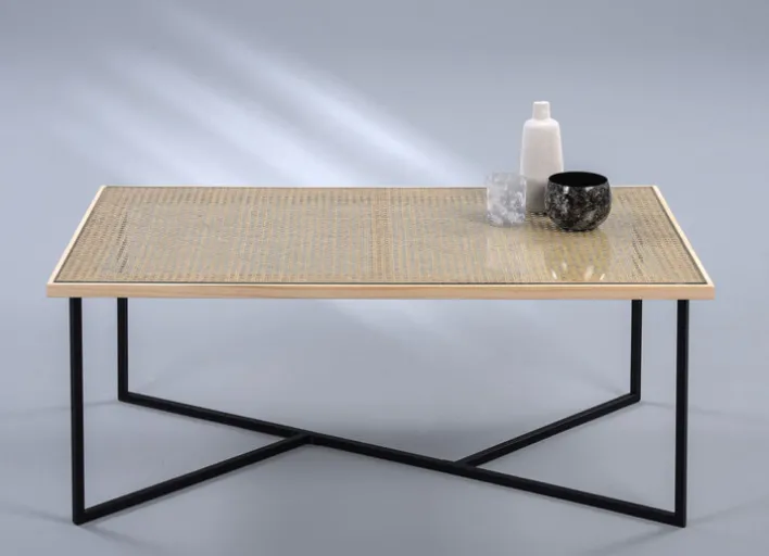 Mit dem extravaganten Couchtisch BRODY mit Tischplatte mit edlem Wiener Geflecht kommt ein spannender Blickfang in das Wohnzimmer, der mit Boho Chic und viel Platz überzeugt.