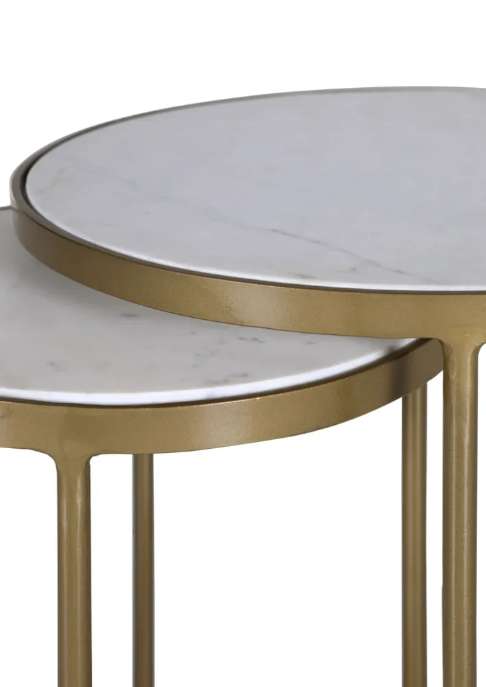 Dieses Set ist ideal für Wohnzimmer, die eine stilvolle und funktionale Ergänzung benötigen. Die Kombination aus Marmor und Metall unterstreicht den modernen Stil und macht die Tische zu einem Blickfang in jedem Raum. Die runde Form der Tische ermöglicht eine flexible Platzierung und harmoniert mit verschiedenen Einrichtungsstilen.