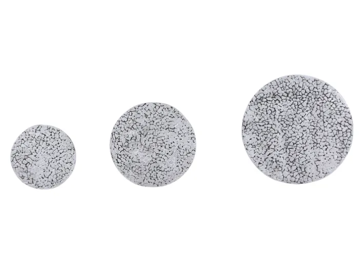Die Maße der Tische variieren, um unterschiedliche Bedürfnisse zu erfüllen: Der größte Tisch hat einen Durchmesser von 51 cm und eine Höhe von 44 cm, der mittlere Tisch misst 40 cm im Durchmesser bei einer Höhe von 38 cm, und der kleinste Tisch hat einen Durchmesser von 30 cm und eine Höhe von 31 cm. Diese Größenvielfalt ermöglicht es, die Tische sowohl zusammen als auch einzeln in verschiedenen Räumen zu nutzen. Die klare Formensprache und die hochwertige Verarbeitung machen das Set zu einem stilvollen und funktionalen Element in jedem Wohnbereich.