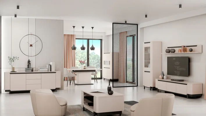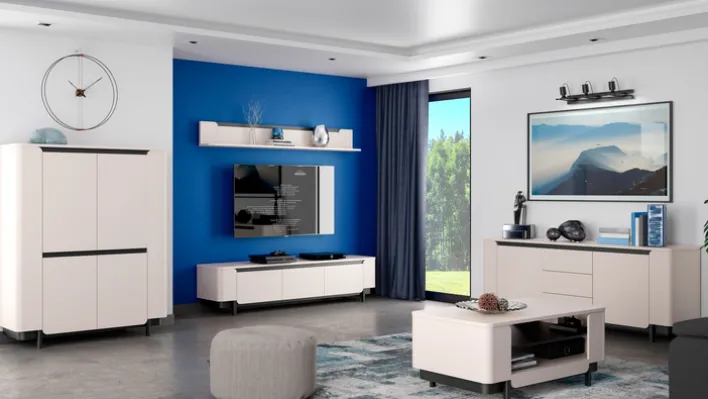 Der Couchtisch VODOL in der Farbe Sand und Schwarz überzeugt mit seinen geräumigen Maßen von 115 x 50 cm und seinem eleganten Aussehen mit den abgerundeten Kanten und den offenen Ablagefächern. Die beiden abgesetzten Farben sorgen für optische Akzente und passen sich hervorragend in die Wohnlandschaft ein.