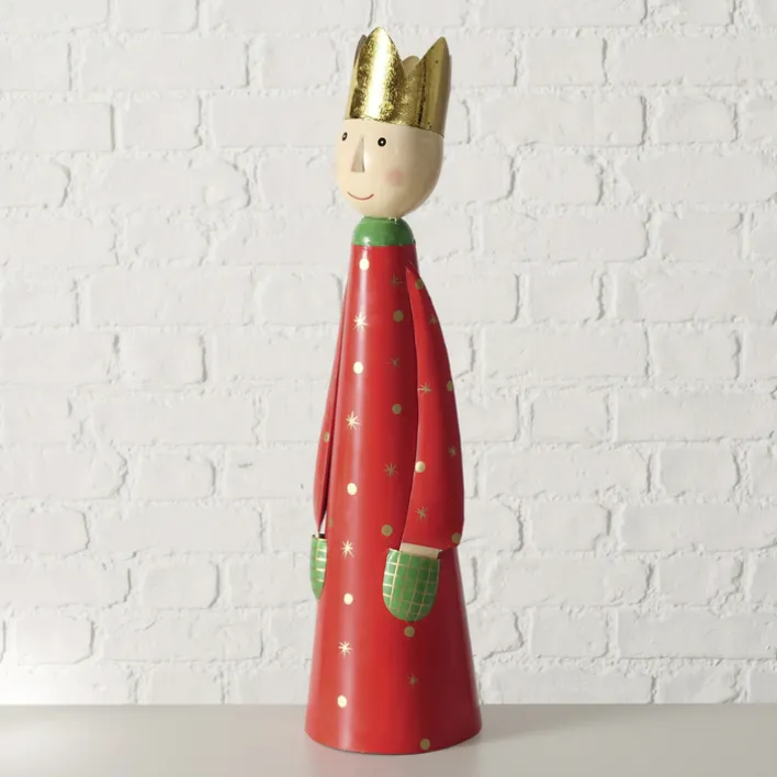 Mit einer Höhe von 58 cm und einer Breite von 15 cm ist die Figur ein auffälliger Blickfang, der sich ideal für die Dekoration von Wohnräumen eignet. Das Gewicht von 875 kg verleiht der Figur Stabilität, sodass sie sicher aufgestellt werden kann. Die goldene Krone auf dem Kopf der Figur unterstreicht den festlichen Charakter und macht sie zu einem besonderen Highlight in jeder Weihnachtsdekoration.
