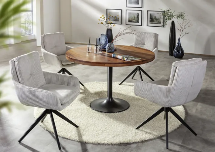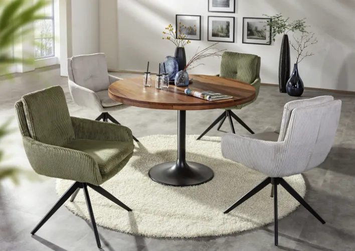 Bequem gepolstert und um 360° drehbar, bietet er hohen Sitzkomfort. Ganz nach Belieben ergänzt der Drehsessel ALICE das Sofa im Wohnzimmer oder auch den Esstisch.