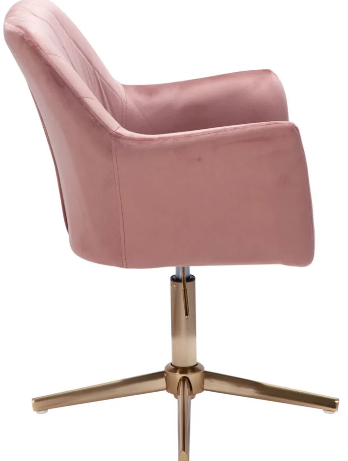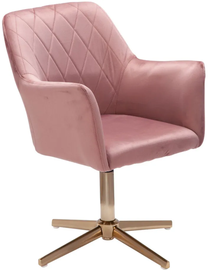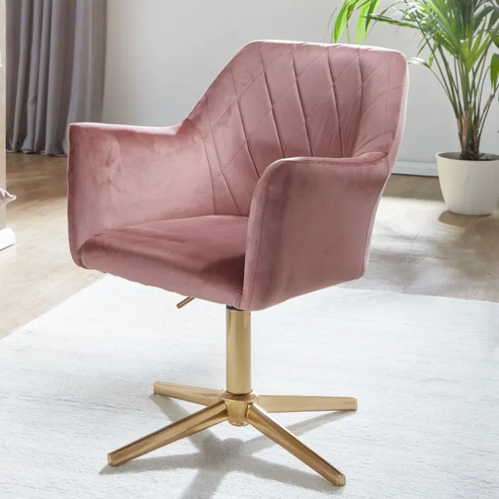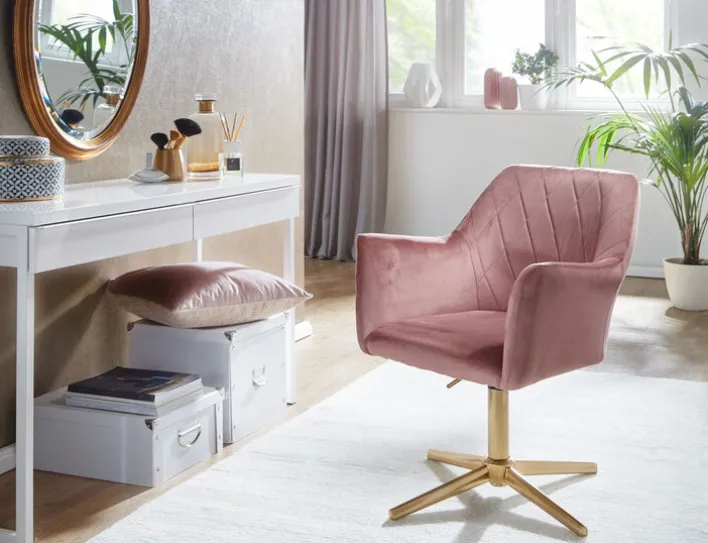 Der Drehstuhl in den Farben Rosa/ Goldfarbig ist ein spannender Eyecatcher für den Schminktisch. Mit seinem stylischen Look bringt er Eleganz in das Schlafzimmer und bietet gleichzeitig einen hohen Sitzkomfort.