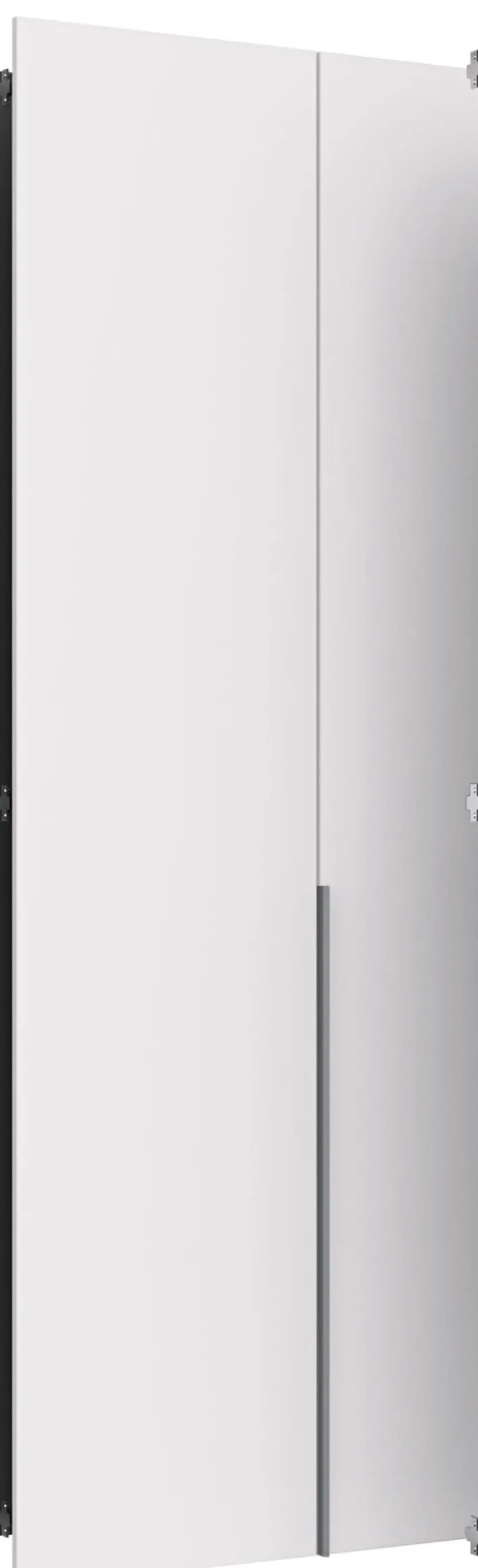 Die Drehtüren-Front mit dem Namen KIRA kommt als 2er Set und hat die Maße 86 x 202 cm. Sie ist in noblem Weiß gearbeitet und eignet sich für einen 90er Korpus. Durch ihr minimalistisches Design lässt sie sich bei vielfältigen Schränken zum Einsatz bringen. In Sachen Kombinationsmöglichkeiten zu andersfarbigen Möbelstücken und verschiedener Deko kann sie aufgrund ihrer schlichten Farbe hervorragend kombiniert werden.