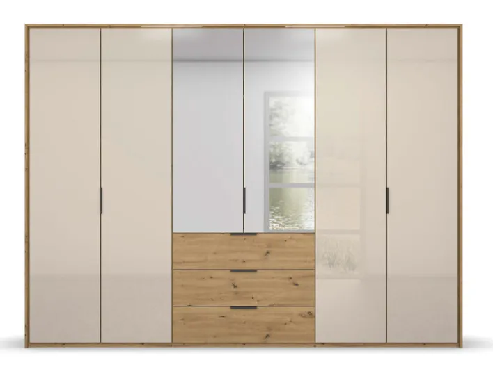 Anzahl Drehtüren inklusive: 6Anzahl Kleiderstangen inklusive: 3 Stk.Anzahl Schubkästen inklusive: 3Anzahl Beleuchtungen inklusive: KeineAnzahl Einlegeböden inklusive: 5