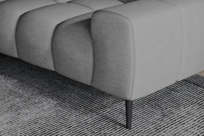 Das Ecksofa ARIEL in modernem Design bietet eine stilvolle und komfortable Ergänzung für Ihr Wohnzimmer. Mit einer Breite von 273 cm und einer Tiefe von 175 cm bietet es großzügigen Platz für Entspannung. Die hellgraue Farbgebung des Webstoffs aus 94 % Polyester und 6 % Polyamid/Nylon verleiht dem Sofa eine zeitlose Eleganz, die sich nahtlos in verschiedene Einrichtungsstile einfügt. Die pulverbeschichteten Metallfüße in Schwarz sorgen für Stabilität und einen modernen Akzent.