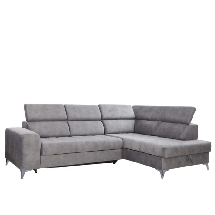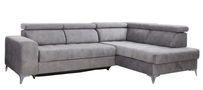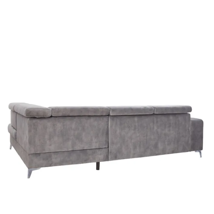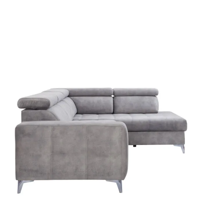 Das graue Ecksofa PRAG besteht aus einer Ottomane rechts und einem 2-Sitzer mit Armteil links. Fünf verstellbare Kopfteile, eine elektrische Sitztiefenverstellung und ein Bettkasten machen die gemütliche Polsterecke zur modernen Wohlfühloase im Wohnzimmer.