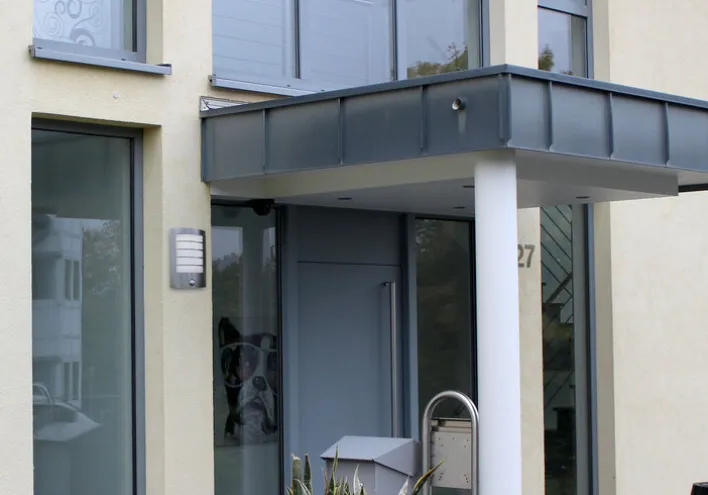 Die 1-flammige ECO-LIGHT LED Außenwandleuchte SLIM mit Bewegungsmelder ist stilvoll und modern zugleich. Das halbrunde Gehäuse mit breiten Schlitzen ist hochwertig verarbeitet. Durch das tolle Design und die Optik ist die schöne Außenleuchte eine passende Ergänzung für schön gestaltete Einfahrten, Eingangsbereiche und Fassaden. Der integrierte Bewegungsmelder hat einen großen Erfassungswinkel und ist mit einer Dämmerungsautomatik ausgestattet.
