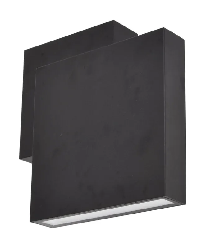 Die ECO-LIGHT LED Außenwandleuchte RIALTO ist 19,5 cm breit, 19,5 cm hoch und 6,4 cm tief. Sie ist aus schwarzem Aluminiumguß und für den Außenbereich durch die Schutzklasse zertifiziert.