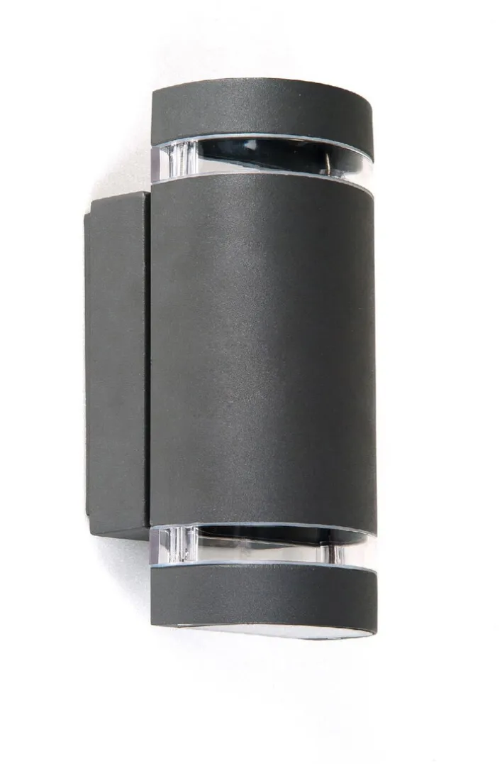 Das hochwertige Gehäuse der Außenleuchte besteht aus leichtem Aluminium. Das Lampengestell und die Wandhalterung sind in der Farbe Anthrazit pulverbeschichtet. Die Diffusoren der Leuchte sind aus satiniertem Kunststoff. Durch den mattierten Kunststoff entsteht ein helles Licht, das nicht blendet. In die Leuchte zwei austauschbare Halogen Hochvolt Leuchtmittel mit der Fassung GU 10 eingesetzt.