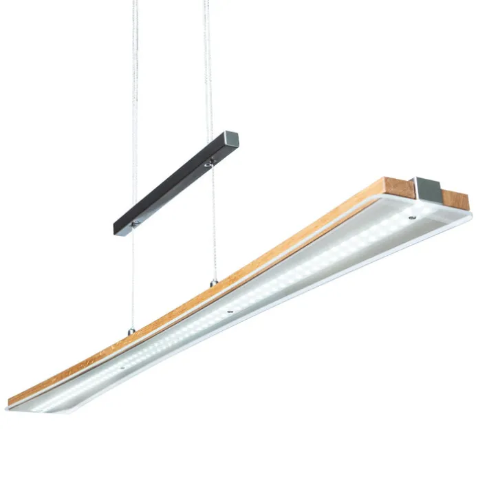 Die nickelfarbige ELOBRA CCT LED Pendellampe PANAMA setzt mit ihrer Holzapplikation dekorative optische Akzente in Ihrem Wohnbereich.