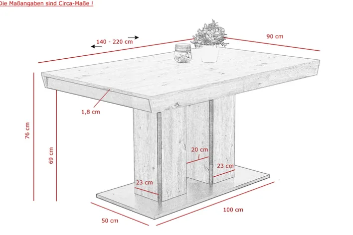 im Lieferumfang enthalten PORTA: 1 Tisch lt. Ausstattung/ZubehörZusatzhinweise PORTA: Bitte die Hinweise an der Ware beachten.Bitte die Pflegeanleitung an der Ware beachten.Lieferhinweise PORTA: Alle Maße sind circa Angaben. Geringfügige Abweichungen sind möglich.Die Lieferung erfolgt je nach Artikelart frei Verwendungsstelle, frei Bordsteinkannte auf einer Einwegpalette oder als Paket. Bitte trage Sorge dafür, dass am vereinbarten Speditionsliefertermin die Ware entgegengenommen werden kann.Lieferhinweis: ohne DekorationLieferzustand: teilmontiert