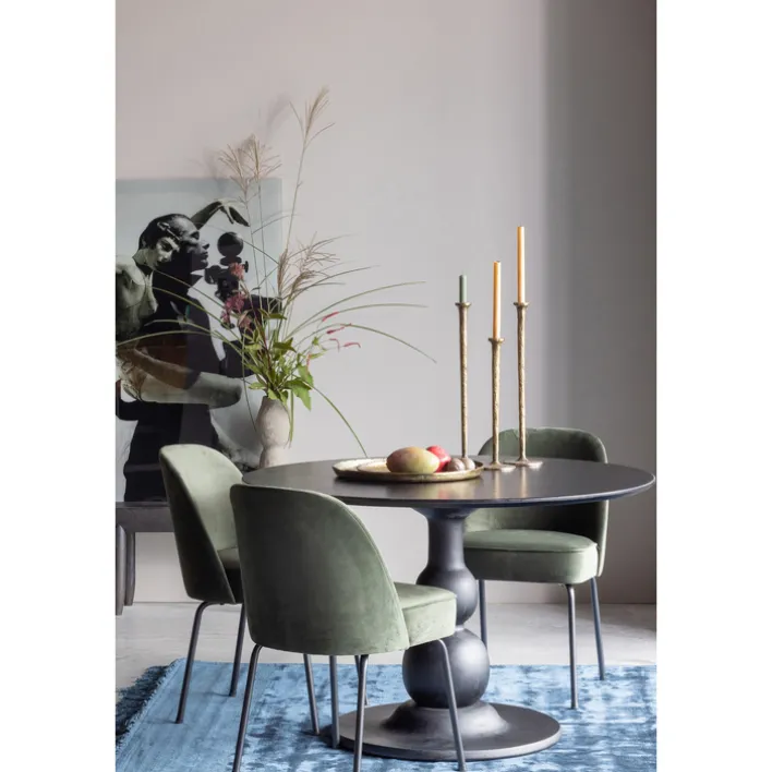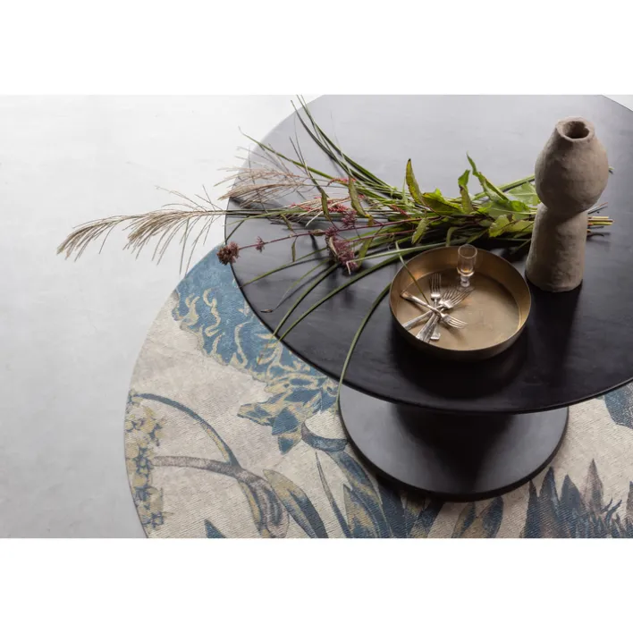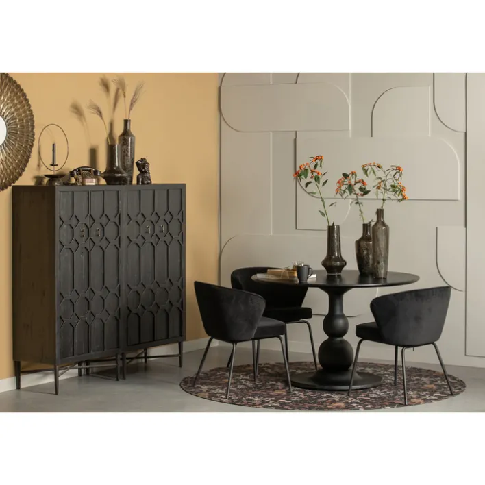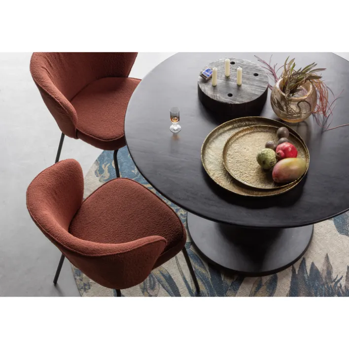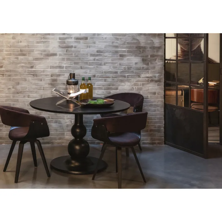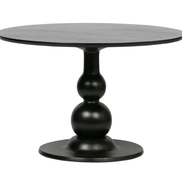 Der Esstisch BLANCO begeistert mit seinem eleganten Säulengestell mit einer runden Bodenplatte. Das Gestell ist aus massivem Mangoholz gearbeitet und mit einer matten Oberfläche schwarz lackiert. Es trägt die runde Tischplatte, die passend aus dem gleichen Holz mit ebenfalls matter Lackierung in schwarzer Farbe besteht.