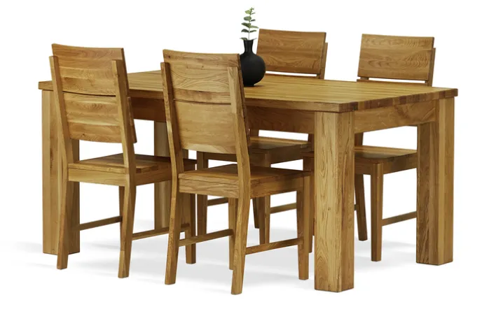 Der Esstisch aus der Serie ET JURIA 2 besticht durch seine robuste Bauweise und das zeitlose Design. Gefertigt aus massivem Eichenholz, bietet er eine natürliche Holzmaserung, die dem Tisch eine warme und einladende Ausstrahlung verleiht. Mit einer Breite von 230 cm, einer Höhe von 76 cm und einer Länge von 90 cm eignet sich der Tisch ideal für größere Essbereiche und bietet ausreichend Platz für gesellige Runden.