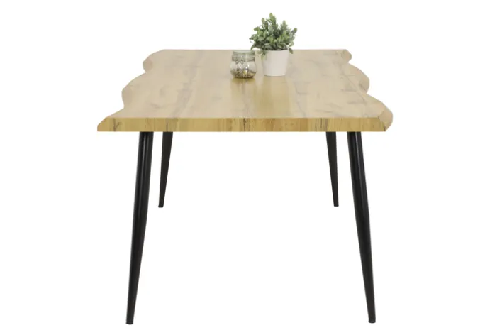 Als Kontrast zur hellbraunen Tischplatte dienen bei dem Esstisch GABI I die schwarzen, leicht nach außen hin abgespreizten Standfüße. Pulverbeschichtet und filigran in ihrer Form, vollenden sie diesen Esstisch auf geschickte Weise, während sie zugleich für viel Beinfreiheit unter der Tischplatte sorgen. Ideal für das Wohn- und Esszimmer sowie die Küche.