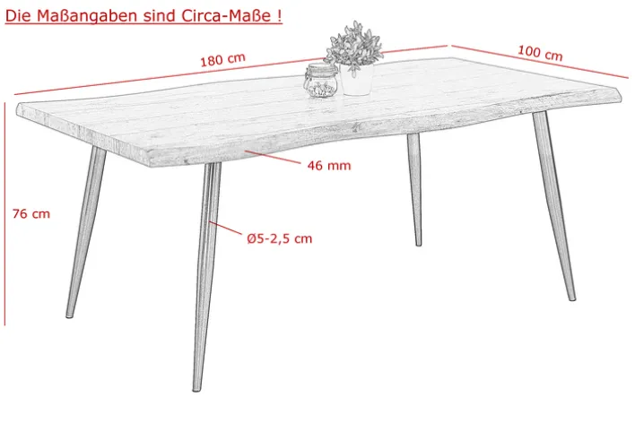 im Lieferumfang enthalten PORTA: 1 Tisch lt. Ausstattung/ZubehörZusatzhinweise PORTA: Bitte die Hinweise an der Ware beachten.Bitte die Pflegeanleitung an der Ware beachten.Lieferhinweise PORTA: Alle Maße sind circa Angaben. Geringfügige Abweichungen sind möglich.Die Lieferung erfolgt je nach Artikelart frei Verwendungsstelle, frei Bordsteinkannte auf einer Einwegpalette oder als Paket. Bitte trage Sorge dafür, dass am vereinbarten Speditionsliefertermin die Ware entgegengenommen werden kann.Lieferhinweis: ohne DekorationLieferzustand: teilmontiert