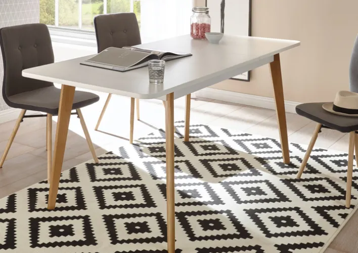 Mit dem Esstisch LENA in den Farben Eiche Riviera/ Weiss Matt lässt sich der Essbereich mit einem schlichten, modernen Möbelstück bereichern. Neben seinem ansprechenden Skandi-Look überzeugt der Esstisch mit einer praktischen Auszugsfunktion.