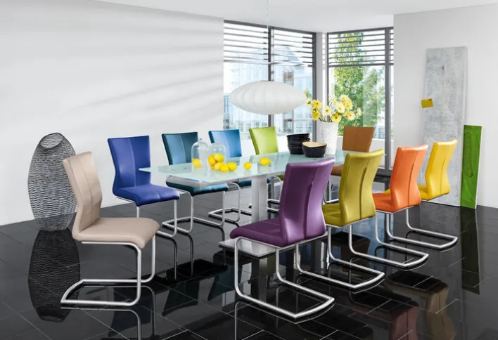 Das Säulengestell aus Edelstahl in Silberfarbe sorgt für Stabilität und unterstreicht das zeitgemäße Design des Tisches. Die rechteckige Form des Tisches passt sich optimal an verschiedene Raumkonzepte an und bietet vielseitige Einsatzmöglichkeiten. Dieser Esstisch ist nicht nur funktional, sondern auch ein stilvolles Möbelstück, das in jedem Esszimmer zum Blickfang wird.