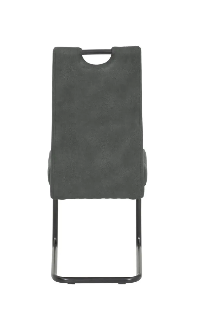 Der Stuhl besticht durch seine graue Vintage-Optik, die durch den Einsatz von hochwertigem Mikrofaser-Textil erreicht wird. Das Material besteht zu 100 % aus Polyester, was für Langlebigkeit und einfache Pflege sorgt. Das pulverbeschichtete Metallgestell in Schwarz verleiht dem Stuhl eine matte Optik und sorgt für Stabilität. Die Polsterung mit Federkern bietet zusätzlichen Sitzkomfort. Der integrierte Griff erleichtert das Umstellen des Stuhls, was besonders in dynamischen Wohnumgebungen von Vorteil ist.
