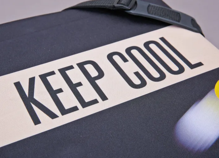 Die Faltkiste FANBOX II in den Farben Schwarz, Orange und Weiß ist eine clevere Idee, Getränke zu kühlen. Besonders praktisch: Sie lässt sich auch als Sitzhocker nutzen.