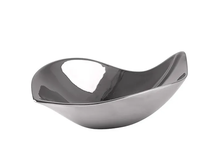 Die silberfarbige Dekoschale SIBELL in Blattform hat eine Länge von 22 cm und ist 14 cm breit. Sie ist aus hochwertiger Keramik gefertigt und in Handarbeit veredelt. Die Schale ist lebensmittelecht und für den Einsatz auf Tisch, Tafel und Buffet geeignet.