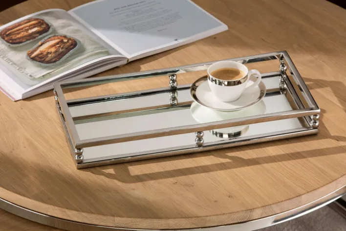 Dieses schicke Tablett ist hochwertig verarbeitet und lässt sich vielseitig verwenden. Mit ihm können nicht nur Getränke und kleine Snacks auf stilvolle Weise serviert werden, sondern es ist auch ein optisch schönes Dekoobjekt. Das Fink Dekotablett COSIMA bringt einen Hauch von Luxus in die Küche und ist bestens geeignet, um einen edlen Wein oder Champagner zu servieren. Auch bei einer Gartenfeier oder beim abendlichen Grillen auf der Terrasse ist es ein stilsicherer und eleganter Begleiter.