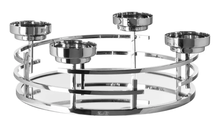 Der Kerzenständer der Serie ELISIO von Fink besticht durch sein elegantes und modernes Design. Gefertigt aus hochwertigem Glas und Metall, präsentiert sich der Kerzenhalter in einer silberfarbenen, vernickelten Oberfläche, die ihm einen zeitlosen Glanz verleiht. Mit einem Durchmesser von 42 cm und einer Höhe von 19,5 cm bietet er Platz für mehrere Kerzen, obwohl keine Kerzen im Lieferumfang enthalten sind.