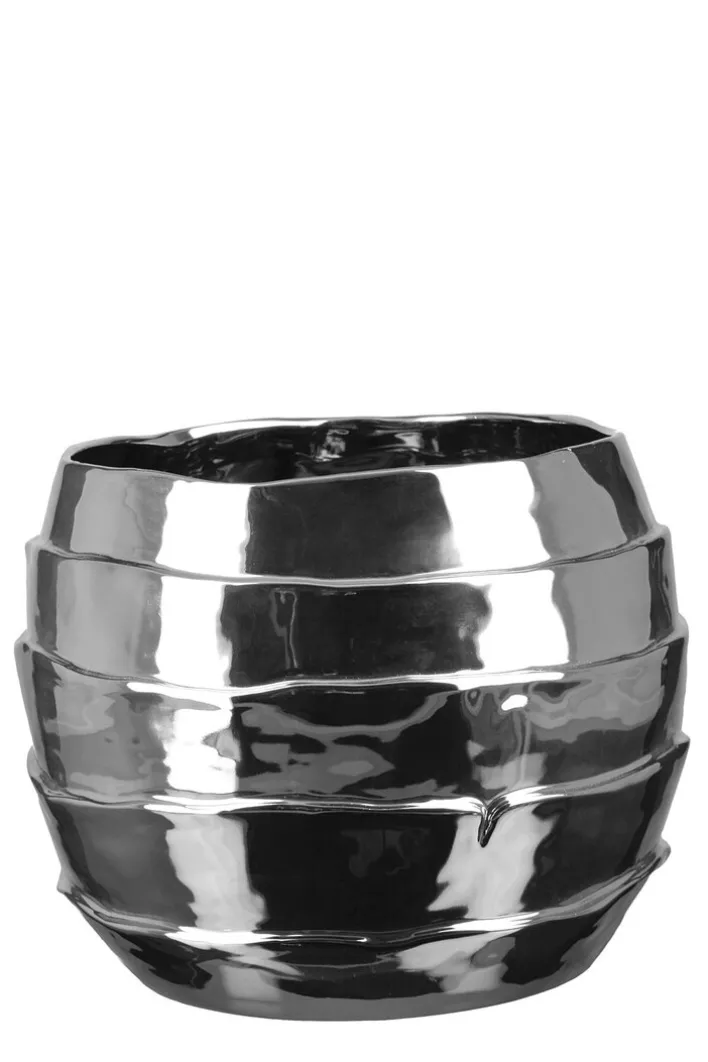 Dieser silberfarbige Übertopf mit der Bezeichnung COCON stammt vom Hersteller Fink und misst je 30 cm im Durchmesser und in der Höhe. Er wird aus hochwertiger Keramik gefertigt und wiegt 3,45 kg. Seine exklusive Optik zählt neben seiner Stabilität zu den besonderen Merkmalen dieses Topfs.