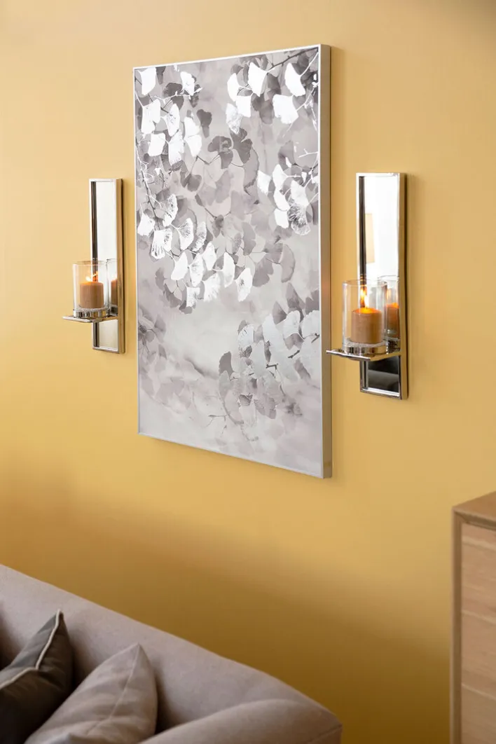 Die Fink Wanddeko DORICA ist aus silberfarbigem Aluminium gefertigt und hat eine Größe von 80 x 120 cm. Mit seinem außergewöhnlichen Design mit Hell-Dunkel-Kontrasten und stilvollen Grauschattierungen wirkt die Wanddekoration top modern, während die Ginkgo die Natur widerspiegeln. Veredelt ist die Wanddeko mit einem hochwertigen Aluminium-Rahmen. Die Wanddekoration ist ein eleganter Blickfang, der lange Freude bereitet und sich mit vielen Möbeln kombinieren lässt. Durch ihre edle Optik sorgt die Wanddeko zusätzlich für eine moderne Atmosphäre voller Eleganz.