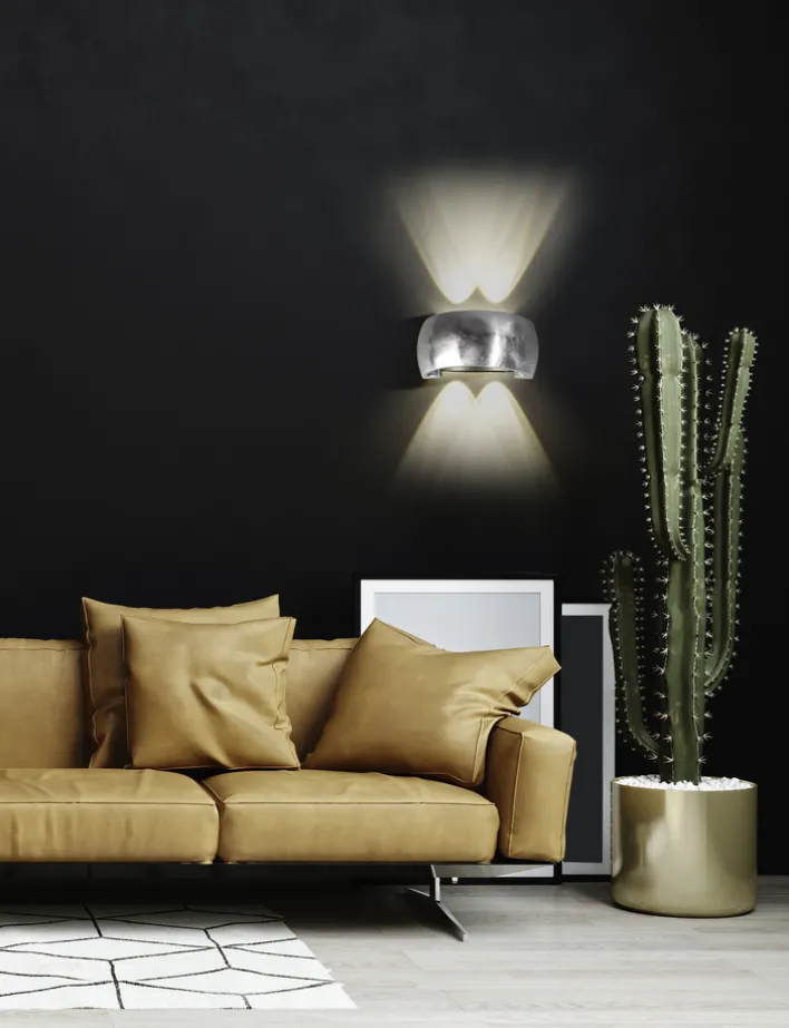 Die LED Wandleuchte aus der Serie ALBI präsentiert sich in einem modernen, abgerundeten Design mit einer Breite von 20 cm und einer Tiefe von 10 cm. Die Oberfläche des Metallkörpers zeigt eine strukturierte, leicht raue Textur in einer alu- beziehungsweise nickelfarbigen Optik. Die Form ist rund und die Lichtaustrittsöffnungen sind oben und unten sichtbar, was für eine effektvolle indirekte Beleuchtung sorgt. Die Hauptfarbe Aluminium/Nickel wird durch das silberne, reflektierende Finish unterstrichen, das dem Raum einen modernen Akzent verleiht.