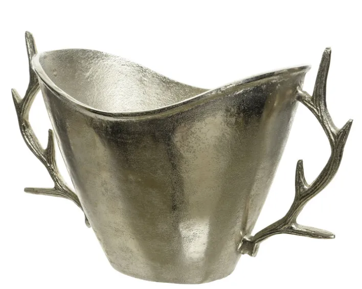 Der Flaschenkühler HIRSCH sorgt auf besonders originelle Weise dafür, dass Getränke wie Sekt, Wein oder Champagner die richtige Trinktemperatur behalten. Der silberfarbige Weinkühler aus hochwertig verarbeitetem Aluminium hat eine Höhe von 22 cm und ist 36 cm breit.