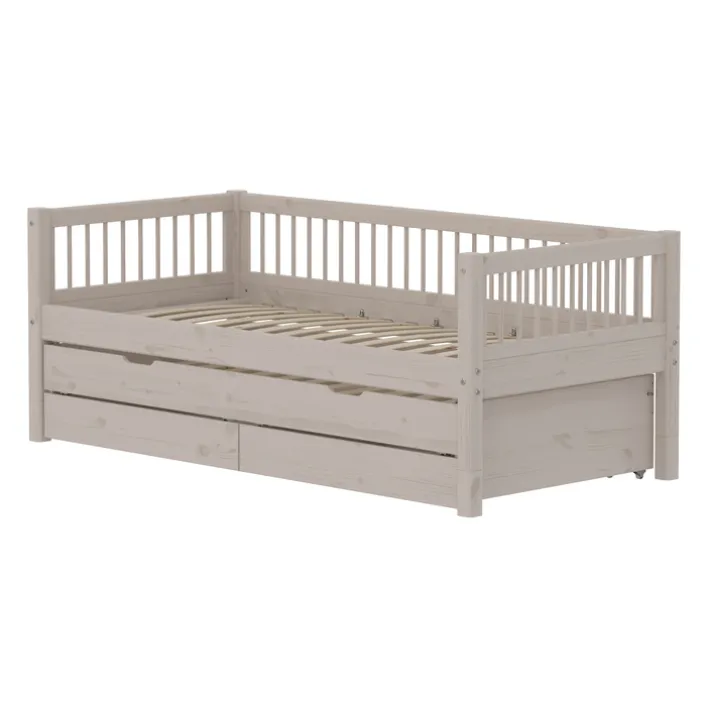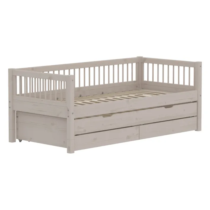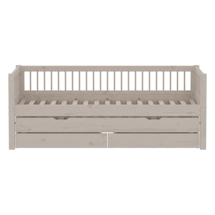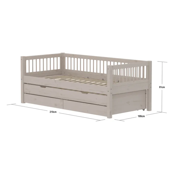 Dieses moderne Bett aus der Serie „Classic“ von Flexa vereint Funktionalität und Stil. Gefertigt aus massivem Kiefernholz, bietet es eine robuste und langlebige Konstruktion. Die lackierte Oberfläche in einem eleganten Grau mit einem „grey washed“ Farbton verleiht dem Bett eine zeitlose Ästhetik, die sich nahtlos in verschiedene Einrichtungsstile einfügt. Mit einer Breite von 100 cm, einer Höhe von 81 cm und einer Länge von 210 cm bietet es eine Liegefläche von 90 x 200 cm, ideal für komfortablen Schlaf.