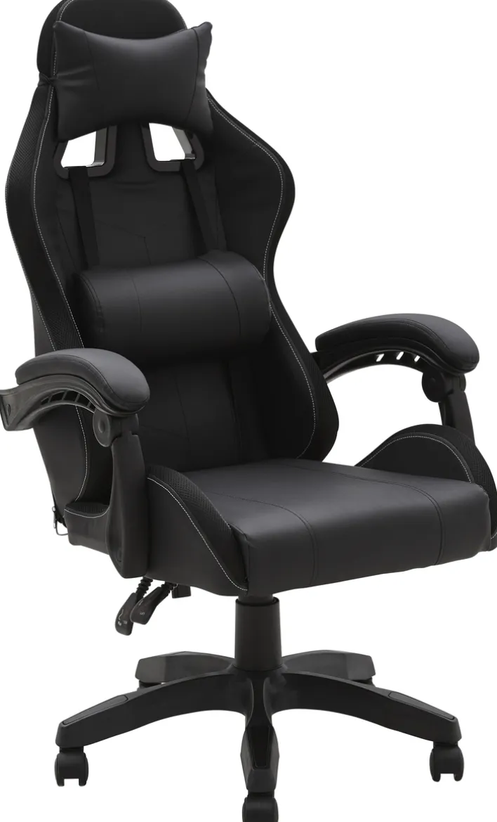 Ebenfalls verstellbar ist die Sitzhöhe vom LED-NEW Gaming-Stuhl in Schwarz, auch die Armlehnen sind frei arretierbar. Ein an der Rücklehne befestigtes Kissen bietet Unterstützung für die Lendenwirbelsäule und begünstigt eine ergonomische, gerade Sitzhaltung. Der Sternenfuß mit seinen fünf integrierten Rollen sorgt selbst an größeren Schreibtischen für viel Flexibilität.
