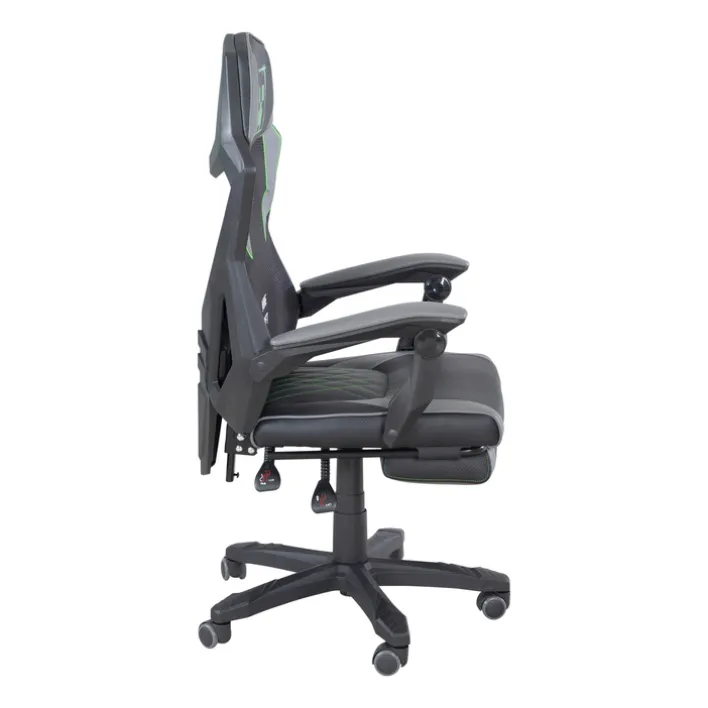 Der Gaming-Stuhl MINECRAFT hat eine Größe von 61 x 114,5-124,5 x 62,5 cm und lässt sich in der Höhe optimal auf die Schreibtischhöhe anpassen. Sein dreifarbiger Stoffbezug mit Minecraft-Design verleiht ihm einen top modernen Look. Damit der Körper bei langen Gaming-Sessions möglichst gut entlastet wird, bietet der Stuhl nicht nur eine Fußablage zum Ausziehen, sondern auch eine Wippmechanik. Diese stützt den Rücken und ermöglicht ein dynamisches Sitzen.