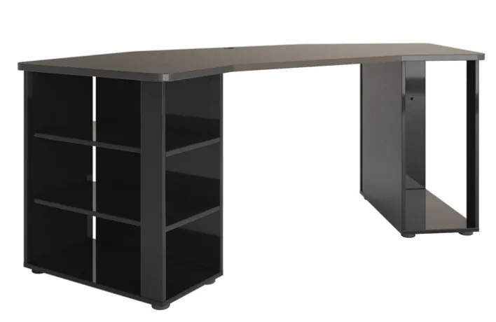 Der schwarze, 205 x 91 cm große Gaming Tisch PIPPO bringt Gamer, Zocker und Nerds auf ein ganz neues Level! Mit seinen offenen Fächern, den beiden Einlegeböden und der großzügigen Oberfläche bietet er eine Menge Platz für Zubehör und Co.
