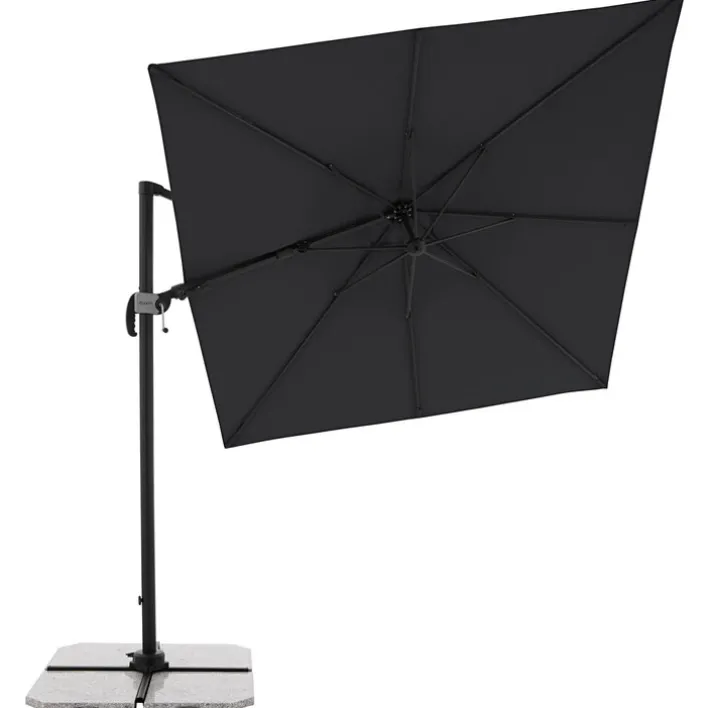 Der quadratische Ampelschirm in der Farbe Anthrazit ist 2-teilig und somit flexibel einsetzbar.