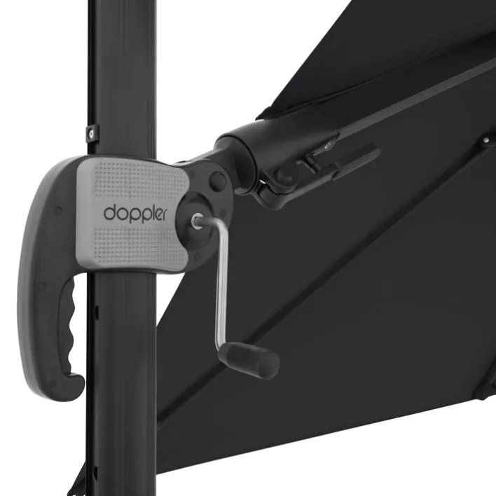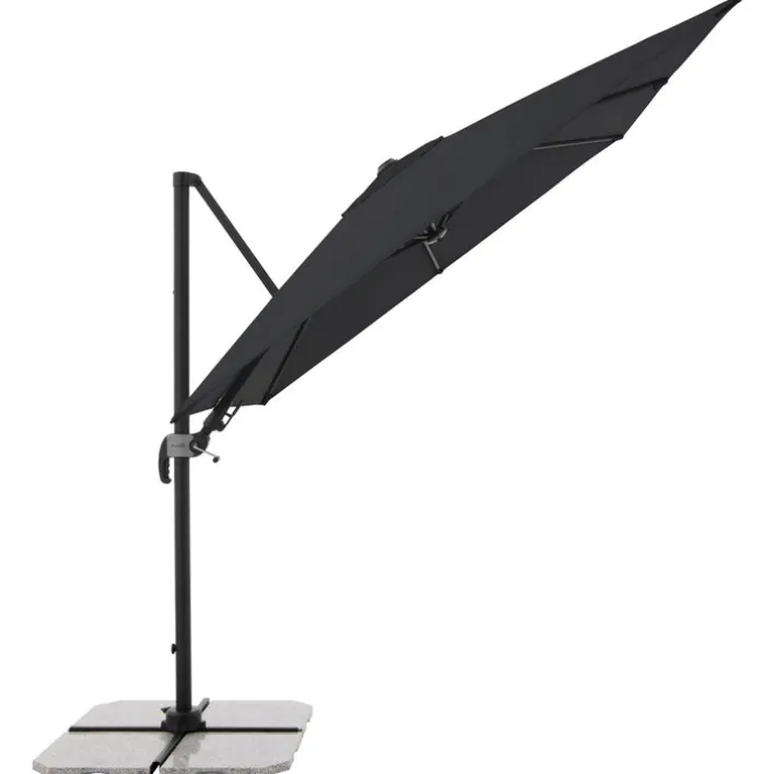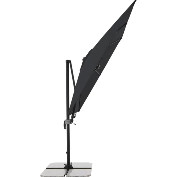 Dieser 2-teilige Ampelschirm neigt sich in ganz nach Wunsch und lässt sich in der Höhe