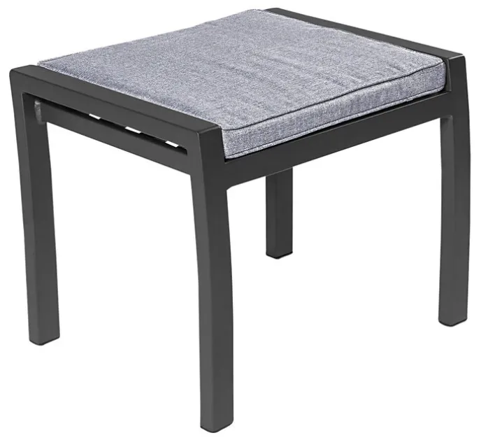 Doch nicht nur als Ablage für die Füße leistet der Gartenhocker LEWIS gute Dienste – mit einer angenehmen Höhe von 47 cm kommt der Hocker immer dann zum Einsatz, wenn im Garten oder auf der Terrasse eine zusätzliche Sitzgelegenheit benötigt wird. Die gepolsterte Sitzfläche misst 60 x 45 cm und ist mit einem hellgrauen Outdoorgewebe aus pflegeleichter Synthetikfaser bezogen. Der Bezug harmoniert optisch hervorragend mit dem Gestell des Hockers, das aus anthrazitfarbenem Aluminium besteht.