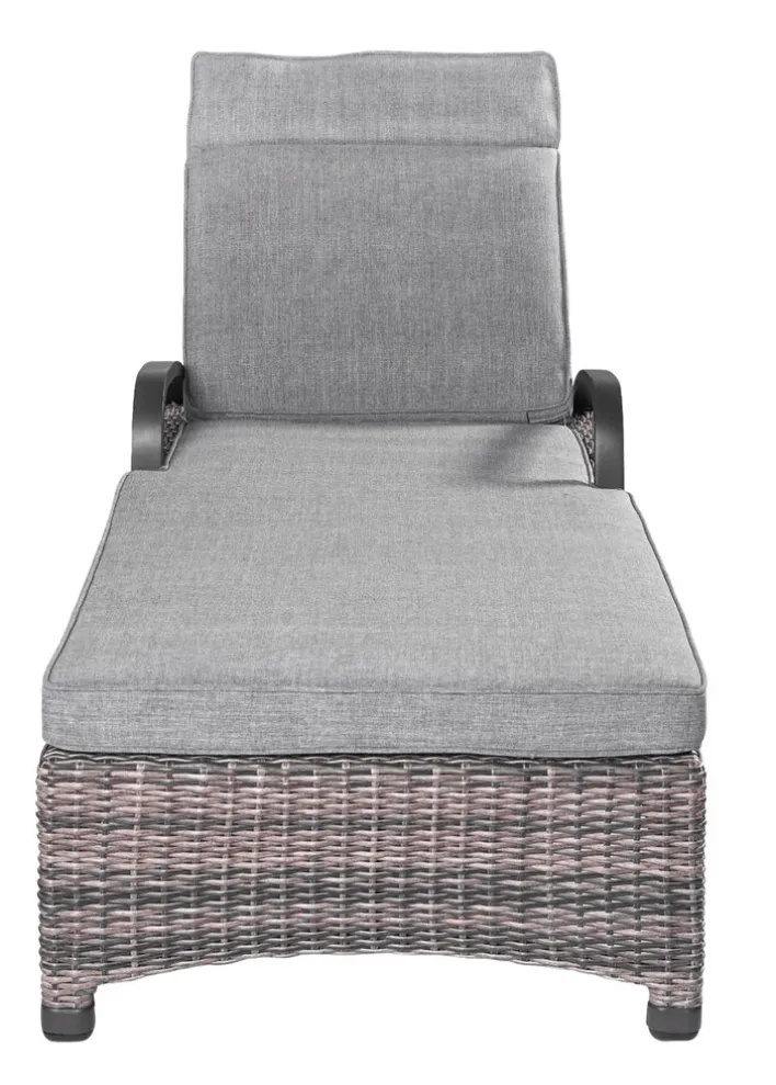 Die schicke Gartenliege LENA ist mit einem graubraunem Polster ausgestattet. Sie besitzt zwei Rollen, mit denen sie schnell umgestellt werden kann. Das Rückenteil ist mittels Knopfdruck verstellbar.
