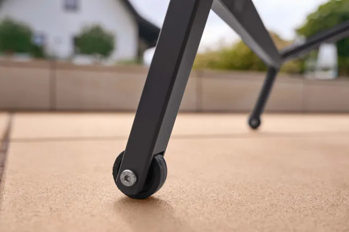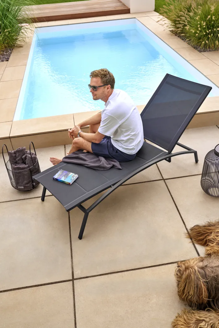 Die anthrazitfarbene Gartenliege RANA kombiniert ein elegantes Design mit einer robusten Konstruktion. Das exklusiv aussehende Gestell besteht aus pulverbeschichtetem Edelstahl und lädt zum Entspannen ein. Diese Sonnenliege erfüllt alle Ansprüche an ein hochwertiges Outdoor-Möbel: Der Hersteller Garden FLAIR setzt konsequent auf qualitativ überzeugende Materialien wie Edelstahl und Textilene, zugleich besticht diese Liege mit einer edlen Optik. Beim Liegekomfort lässt das Möbelstück keine Wünsche offen. Das Outdoorgewebe sorgt für Komfort, zudem positionieren Nutzer die Kopf- und Rückenlehne bequem mittels Gasdruckfeder. Ein weiterer Pluspunkt der Gartenliege RANA sind die stabilen Rollen, mit denen sich das Möbelstück leicht schieben oder ziehen lässt.