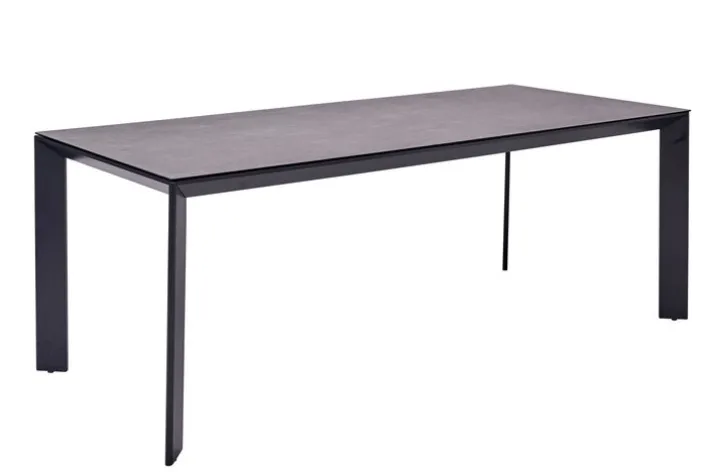 Das stabile Vierfußgestell des Gartentischs RON besteht aus Aluminium. Das Leichtmetall ist pulverbeschichtet und dadurch strapazierfähig. Die rechteckige Tischplatte besteht aus Glaskeramik und ist pflegeleicht. Der hochwertige Gartentisch ist für den modernen Innen- oder Außenbereich geeignet.