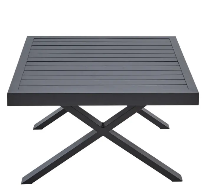 Das Garden FLAIR Loungetisch Set Outdoor RIO besteht aus einem 2-teiligen Set aus anthrazitfarbenem Aluminium. Beide Gartenbeistelltische haben eine quadratische Abstellfläche von 72 x 72 cm. Während einer der Tische eine Höhe von 34 cm hat, ist der andere Tisch 43 cm hoch. Beide Tische sind mit stabilen, sich überkreuzenden Tischbeinen ausgestattet, die ihnen einen festen Stand geben.