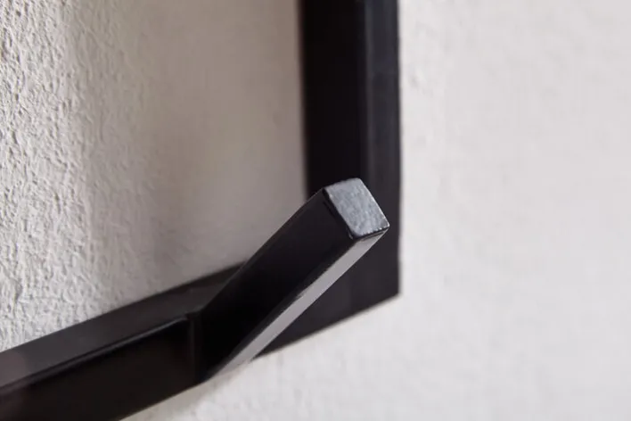 Diese Garderobenleiste misst 30 cm in der Tiefe, 70 cm in der Breite und 27 cm in der Höhe bei einem Gewicht von 5 kg und 10 kg Maximalbelastbarkeit. Sie besteht aus einem schwarzen Rahmen aus Metall in der Art von lackiertem und pulverveschichtetem Schmiedeeisen in matter Optik und einer Ablagefläche aus hellbraunem Holz in der Holzart von Akazie. Dabei kommt Massivholz zur Anwendung.