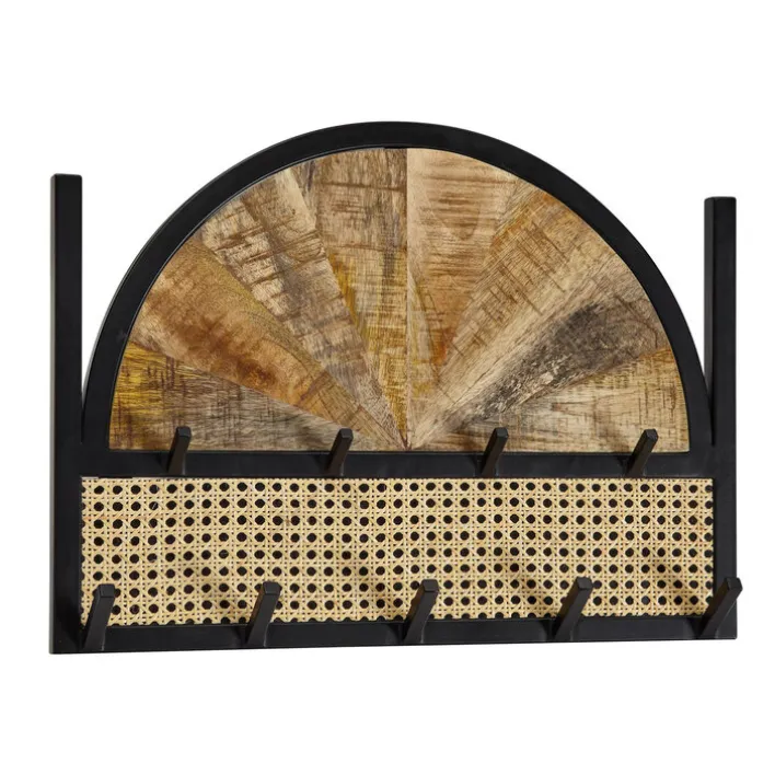 Das 53 x 40 cm große Garderobenpaneel Mango von verströmt fast schon orientalische Akzente in den heimischen vier Wänden – könnte aber genauso gut dem angesagten Bohemian-Style zugeordnet werden. Die rechteckige Form des Paneels wird durch das halbrunde Deko-Element in der Mitte geschickt durchbrochen, auch das Flechtmuster zwischen den Haken weckt Assoziationen an ferne Länder.