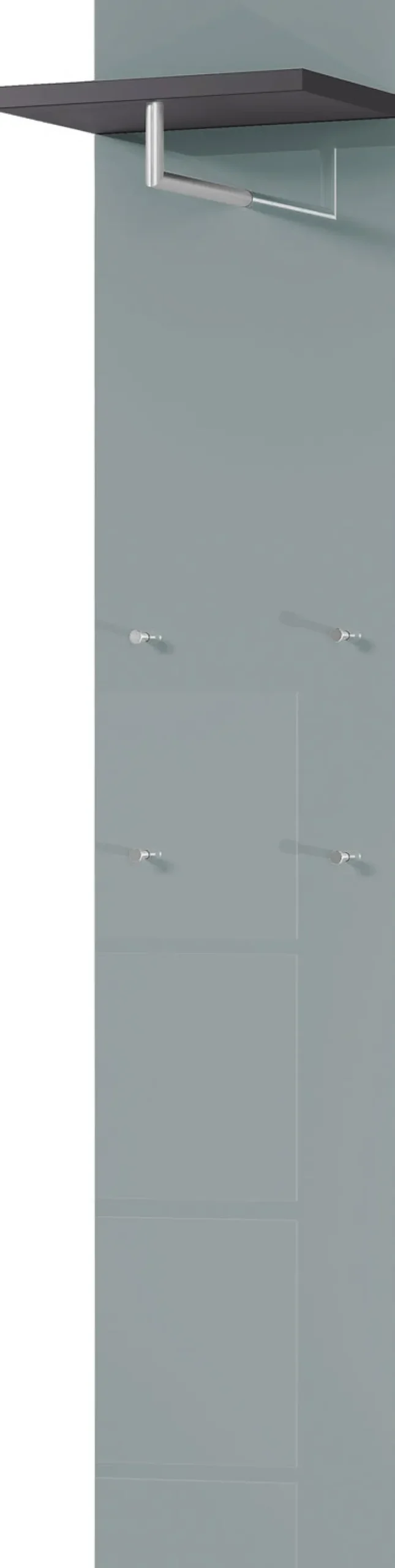 Das Garderobenpaneel aus der Serie Siriano vereint modernes Design mit praktischer Funktionalität. Mit einer Breite von 39 cm, einer Höhe von 190 cm und einer Tiefe von 30 cm bietet es ausreichend Platz für Ihre Garderobe. Die Hauptfarbe in Silbergrau/Graphit verleiht dem Paneel eine elegante und zeitlose Optik, die sich nahtlos in verschiedene Einrichtungsstile einfügt.
