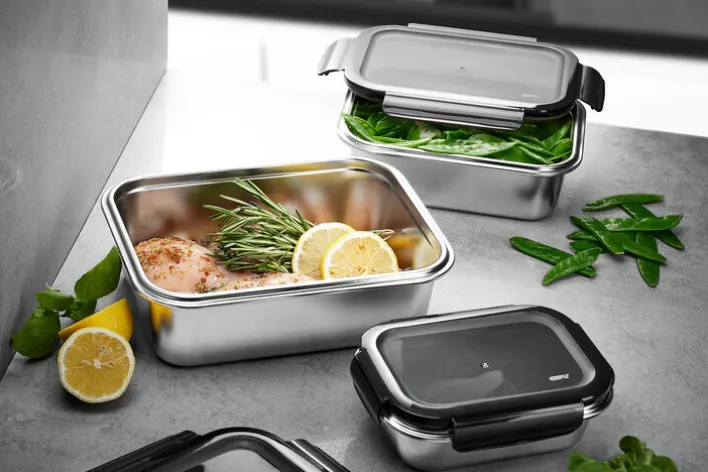 Das Frischhaltedosen-Set PROVIDO ist ein 2-teiliges Modell der Marke GEFU und wird aus solidem sowie rostfreiem Edelstahl gefertigt. Deckel können zu den Dosen auf Wunsch separat hinzubestellt werden. Die Dosen eignen sich zur Aufbewahrung von Speiseresten und lassen sich für die Zubereitung eines Pausensnacks im Job verwenden. Ganz gleich, ob warme oder kalte Speisen in den Frischhaltedosen gelagert werden: Sie erhalten die Aromen für lange Zeit.